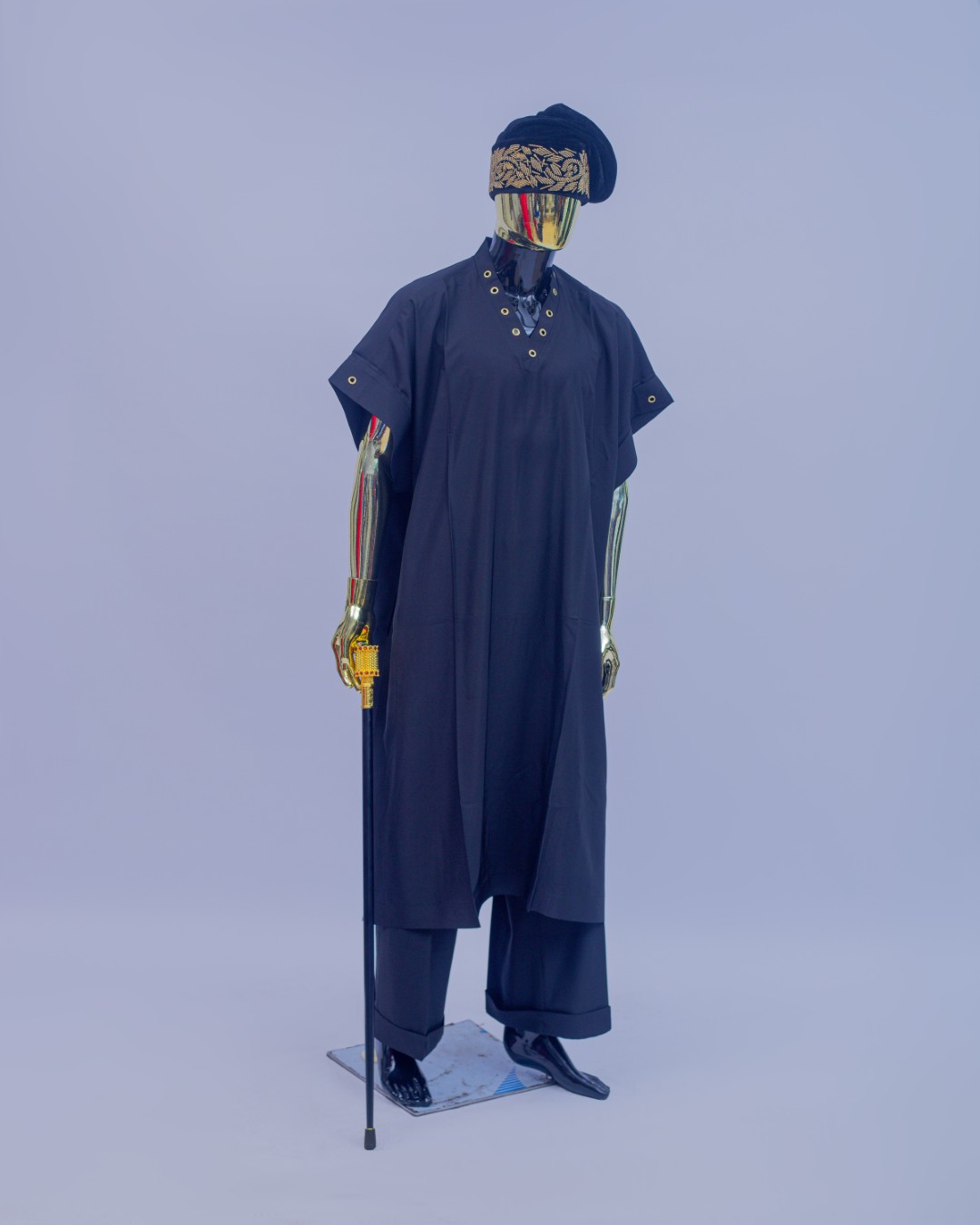 Command attention with this striking Black Traditional Agbada, complete with a matching gold-embroidered hat. Perfect for cultural events, weddings, or formal occasions, this outfit exudes elegance and tradition. Its flowing design and intricate details showcase a timeless sophistication that makes a bold statement.